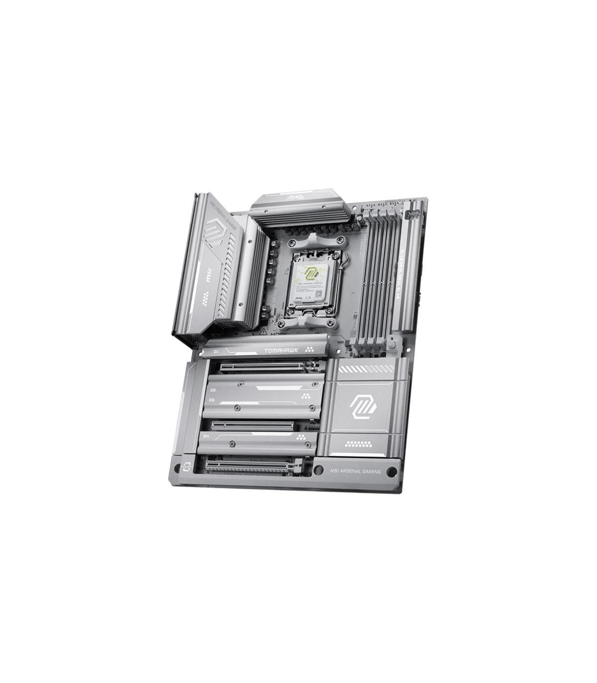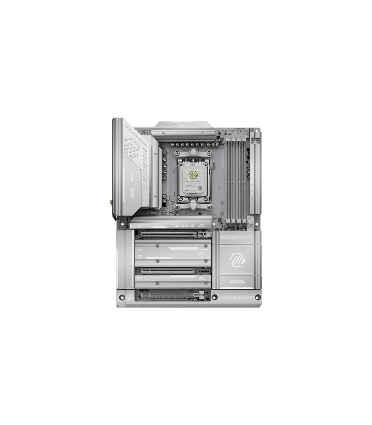 MSI MAG X870E TOMAHAWK MAX WIFI PZ. Fabricante de procesador: AMD, Socket de procesador: Zócalo AM5, Procesador compatible: AMD Ryzen 7000 Series, AMD Ryzen 8000 Series, AMD Ryzen 9000 Series. tipos de memoria compatibles: DDR5-SDRAM, Memoria interna máxima: 256 GB, Tipo de ranuras de memoria: DIMM. Interfaces de disco de almacenamiento soportados: M.2, SATA III, Tipos de unidades de almacenamiento admitidas: HDD & SSD, Niveles RAID: 0, 1, 10. Tipo de interfaz ethernet: 5 Gigabit Ethernet, Controlador LAN: Realtek RTL8126, Estándar Wi-Fi: Wi-Fi 7 (802.11be). Componente para: PC, Factor de forma: ATX, Familia del chipset: AMD