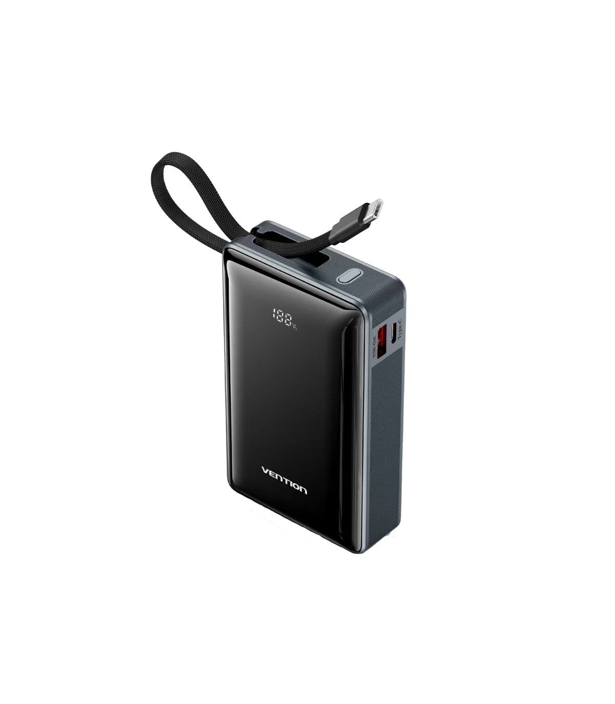 20000mAh Power Bank (USB-C + USB-C/USB-A) with Built-in USB-C Cable 65W Gray LED Display Type