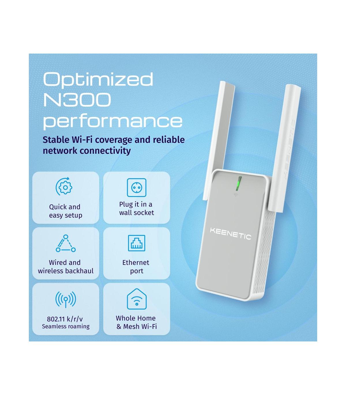 Keenetic Buddy 4Amplificador de cobertura Wi-Fi N300 compatible con malla con puerto Fast Ethernet