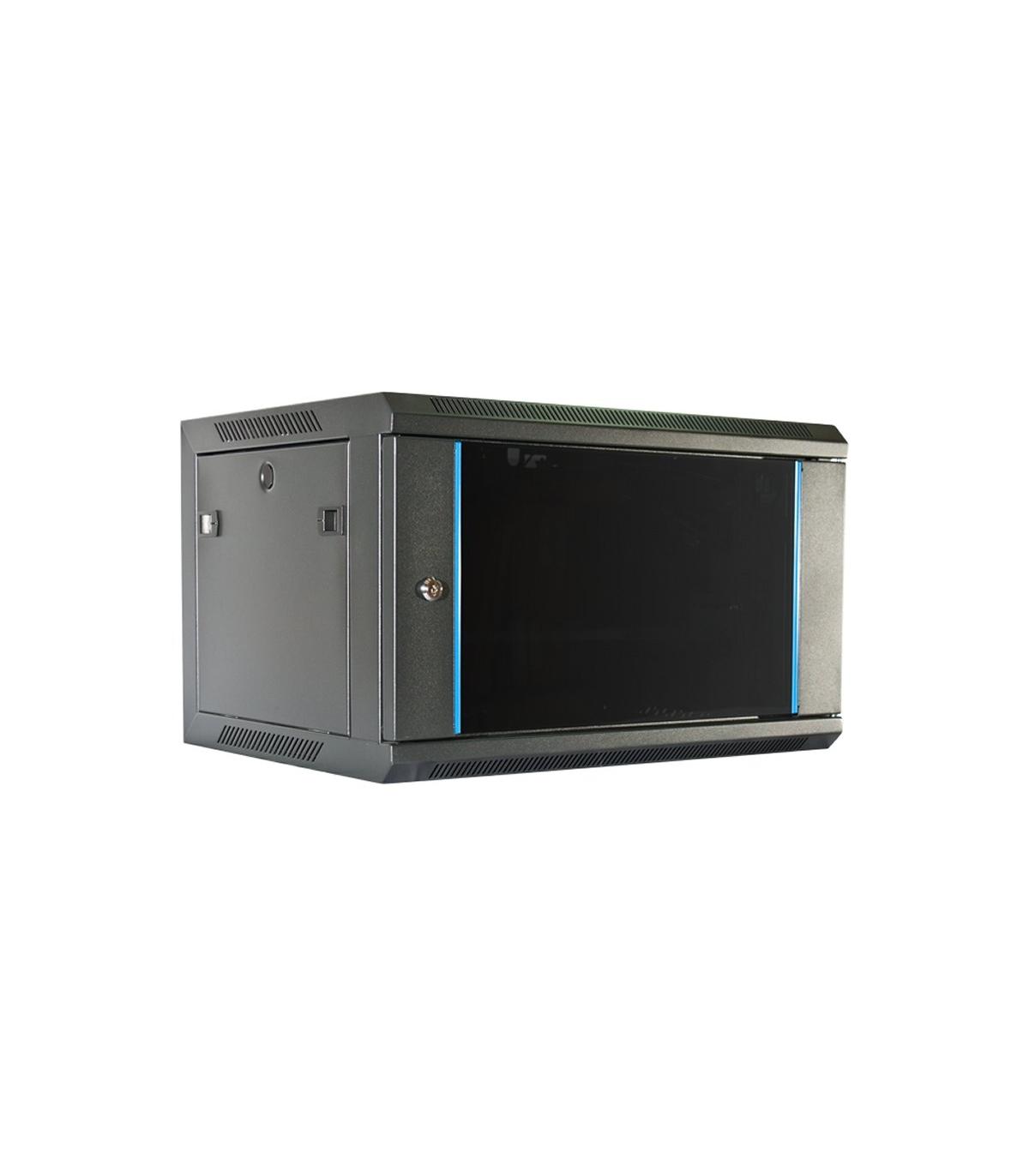 Rack 6U con 450mm de fondo sin accesorios serie estándar, con gran calidad y resistencia, de fácil instalación en pared y apropiado para alojar en su interior routers de conexión a internet, pequeños repartidores Switch para interconectar servidores, puestos de trabajo, impresoras de red y teléfonos IP.
