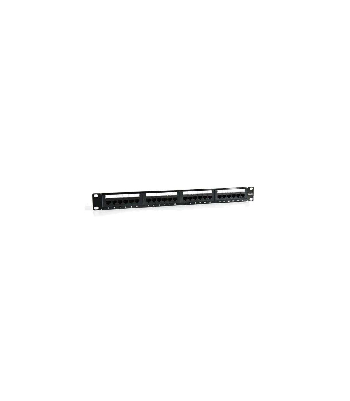 | Características | - Cumple los estándares: ANSI/TIA/EIA 568B.2,ISO/IEC 11801&EN50173 - Requiere herramienta de inserción 110 & Krone. - Bandeja para enrutamiento del cableado. - Carcasa metálica de estándar 19" en color negro. - 24 tomas RJ45 Cat.6 UTP. |