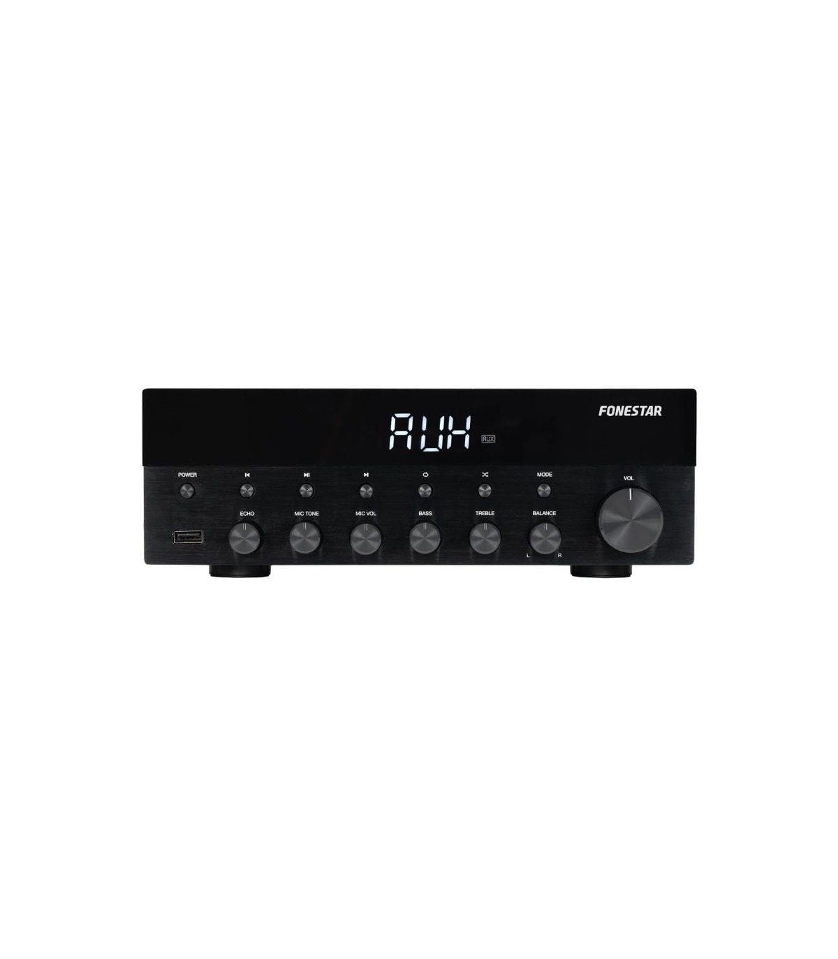 - Amplificador estreo Hi-Fi con reproductor Bluetooth, USB y radio FM.
