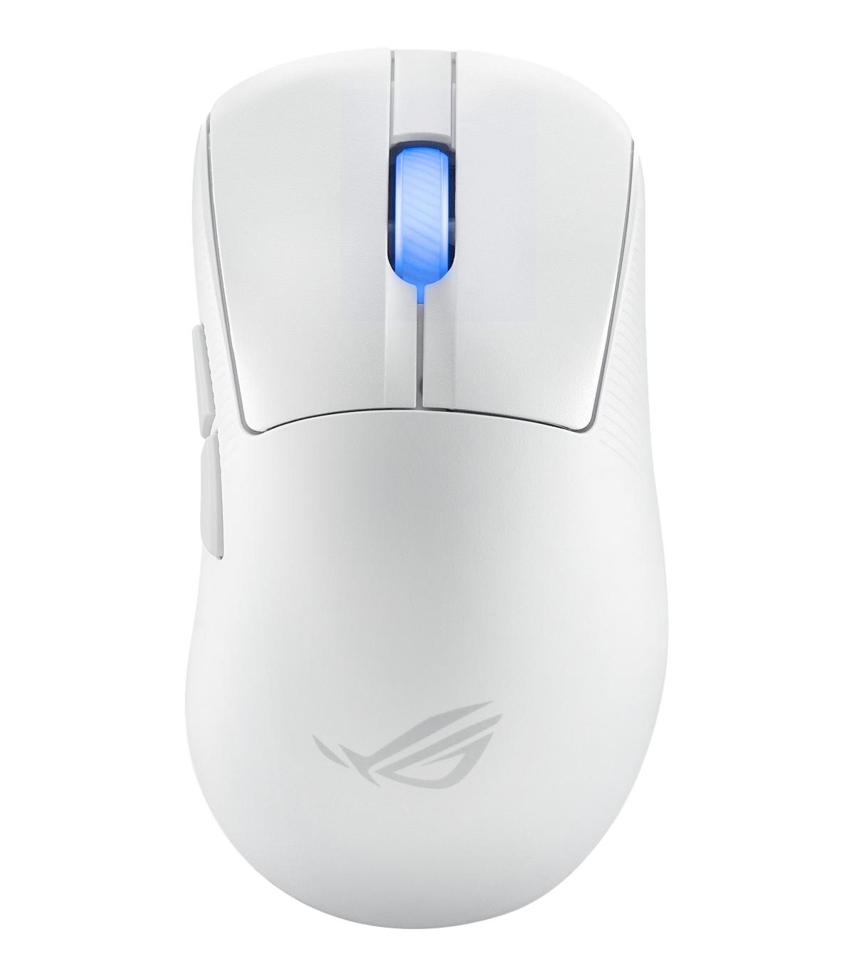 ASUS ROG Keris II Ace Wireless AimPoint White. Factor de forma: mano derecha. Tecnología de detección de movimientos: Óptico, Interfaz del dispositivo: RF Wireless + Bluetooth + USB Type-A, Resolución de movimiento: 42000 DPI, Tipo de botones: Botones presionados, Cantidad de botones: 4, Tipo de desplazamiento: Rueda, Aceleración (máx.): 50 G. Iluminación de color: Multi. Fuente de energía: Baterías/Cable. Color del producto: Blanco