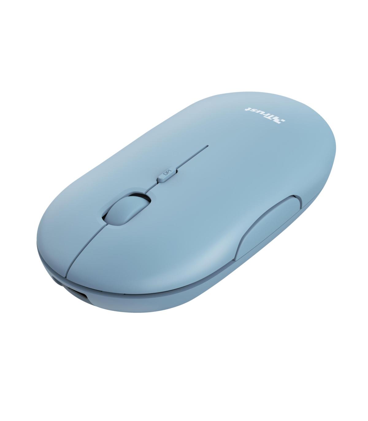 Trust Puck, Ambidextro, RF Wireless + Bluetooth, 1600 DPI, Azul