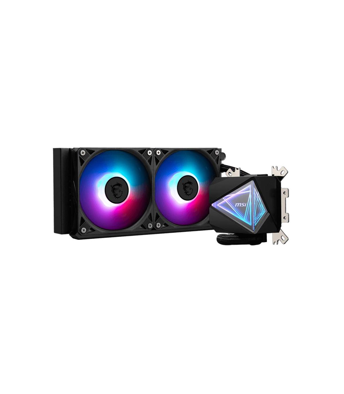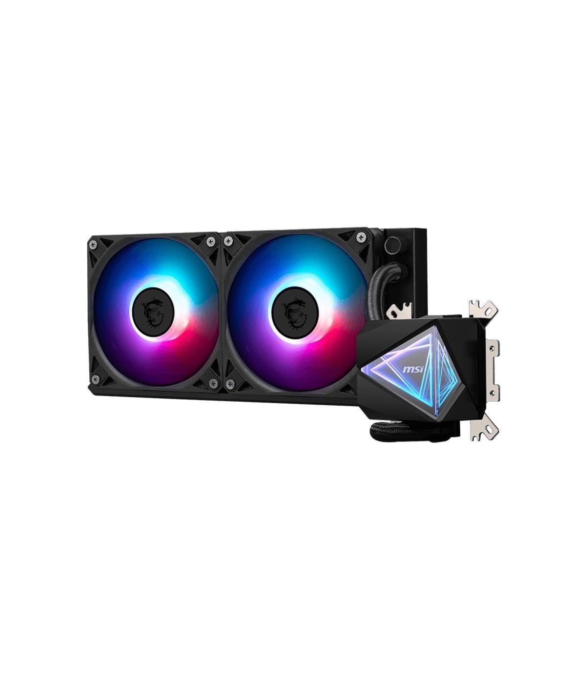 MSI MAG Coreliquid I240. Tipo: Sistema de refrigeración líquida todo en uno, Diámetro de ventilador: 12 cm, Tipo de soporte: Tecnología Loop Dynamic Bearing (LDB). Ancho: 69,1 mm, Profundidad: 74 mm, Altura: 62,5 mm. Color del producto: Negro