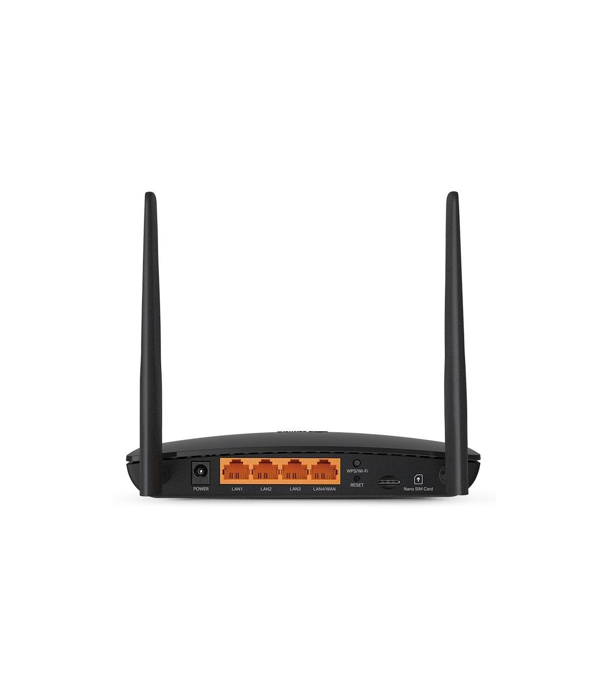 TP-Link Archer MR402. Banda Wi-Fi: Doble banda (2,4 GHz / 5 GHz), Estándar Wi-Fi: Wi-Fi 5 (802.11ac), Tasa de transferencia de datos WLAN (máx.): 867 Mbit/s. Tipo de interfaz Ethernet LAN: Ethernet rápido, Ethernet LAN, velocidad de transferencia de datos: 10,100 Mbit/s, Tecnología de cableado: 10/100Base-T(X). Generación de red móvil: 4G, Estándares 3G: HSPA, UMTS, Estándar 4G: LTE-TDD & LTE-FDD. Algoritmos de seguridad soportados: 64-bit WEP, 128-bit WEP, WPA, WPA-PSK, WPA2, WPA2-PSK, Seguridad con cortafuegos: DoS, SPI Firewall, IP Address Filter/Domain Filter, IP and MAC Address Binding. Protocolos de red compatibles: IPv4, IPv6