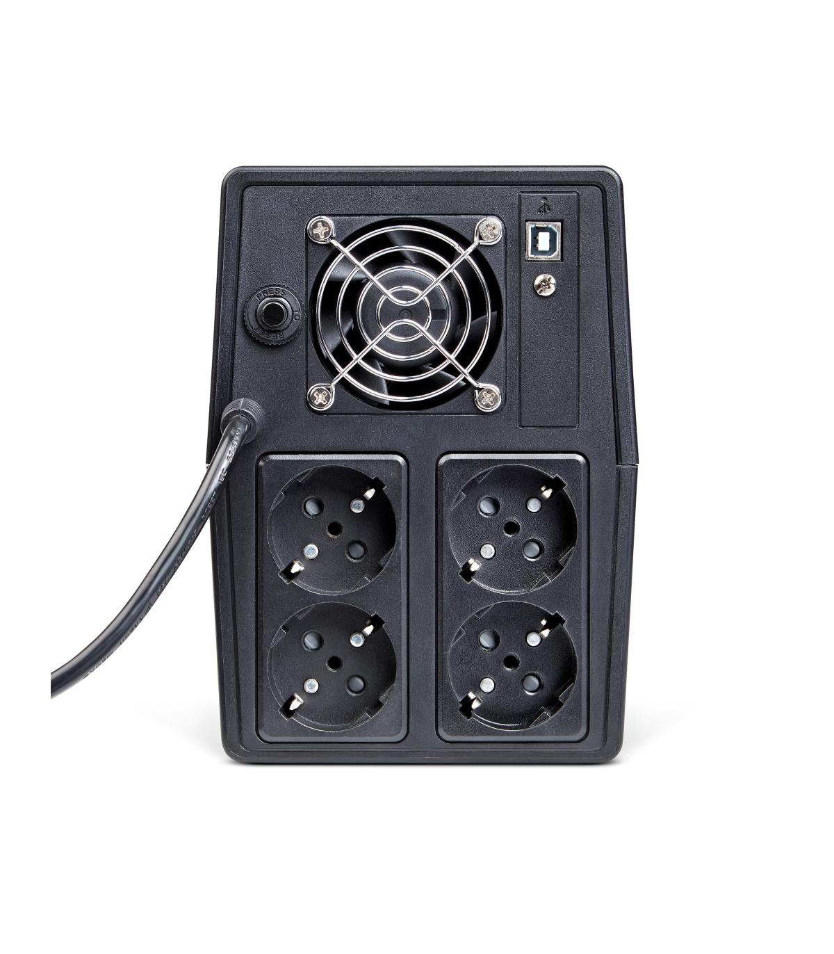 Salicru SPS 1500 ONE BL. Topología UPS: Línea interactiva, Capacidad de potencia de salida (VA): 1,5 kVA, Potencia de salida: 900 W. Tipo de salida AC: Tipo F, Cantidad de salidas AC: 4 salidas AC, Tipo de puerto USB: USB Tipo B. Tecnología de batería: Plomo-Calcio (Pb-Ca), Vida útil de la batería (máx.): 5 año(s), Tiempo de recarga de la batería: 6 h. Factor de forma: Torre, Color del producto: Negro, Tipo de enfriamiento: Activo. Certificación: EN IEC 62040-1 EN IEC 62040-2 EN IEC 62040-3 ISO 9001, ISO 14001, ISO 45001