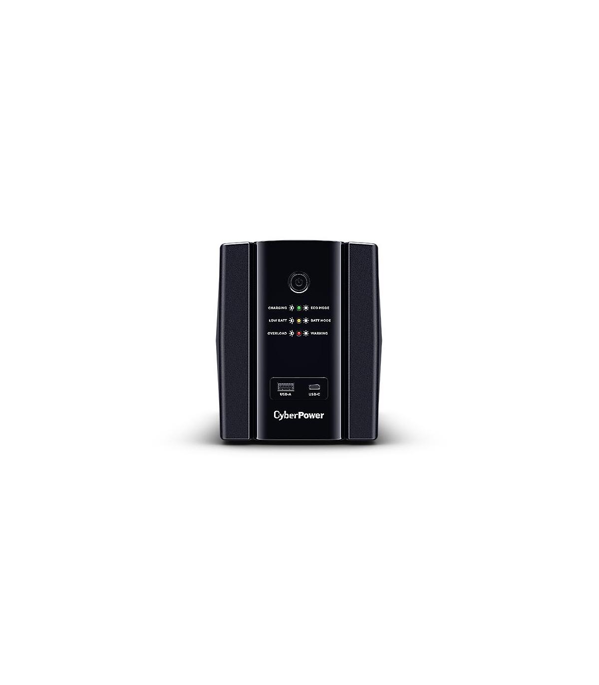 CyberPower UT2200EG. Topología UPS: Línea interactiva, Capacidad de potencia de salida (VA): 2,2 kVA, Potencia de salida: 1320 W. Tipo de salida AC: Tipo F, Cantidad de salidas AC: 4 salidas AC, Tipo de puerto USB: USB Type A/USB Type-C. Tecnología de batería: Sealed Lead Acid (VRLA), Tiempo de recarga de la batería: 8 h, Corriente de carga: 2,1 A. Factor de forma: Torre, Color del producto: Negro, Material de la carcasa: Plástico. Certificados de conformidad: CE, RoHS, Certificación: RoHS