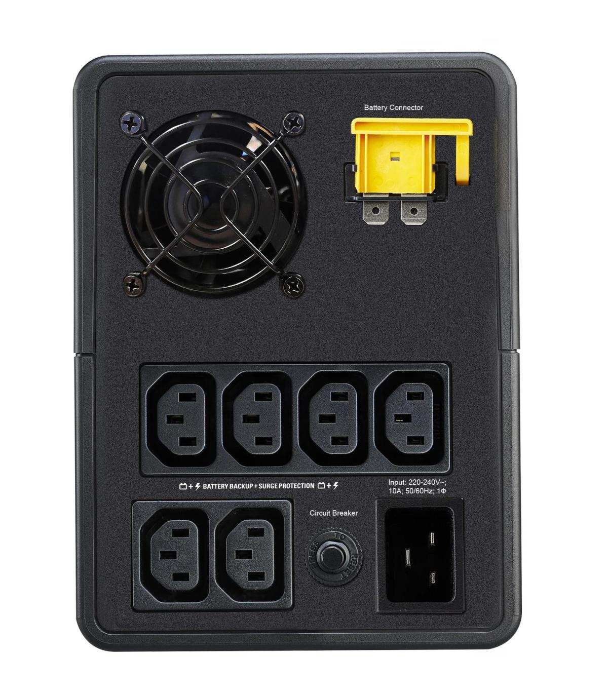 APC Easy UPS. Topología UPS: Línea interactiva, Capacidad de potencia de salida (VA): 2,2 kVA, Potencia de salida: 1200 W. Tipo de salida AC: C20 acoplador, Conector: C20 acoplador, Cantidad de salidas AC: 6 salidas AC. Tecnología de batería: Sealed Lead Acid (VRLA). Color del producto: Negro, Longitud de cable: 1,2 m. Certificación: CE