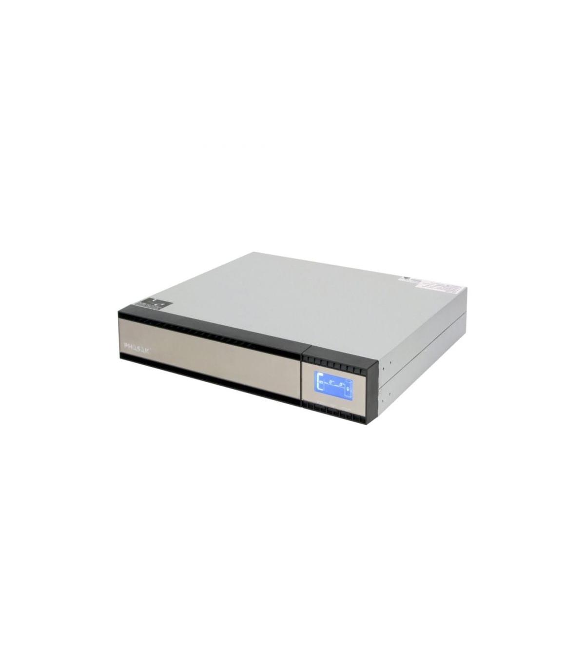 La serie Phasak Online Rack LCD incorpora tecnologa Online de Doble Conversin Real Monofsico y permite la instalacin de bancos de bateras externos en todas sus referencias. Cuenta con tomas RJ45 protegidas, que ofrecern proteccin contra sobretensiones y ruido elctrico para su conexin de telfono / ADSL / Ethernet. Disponible en potencias de 1000, 1500, 2000, 3000, 6000 y 10000 VA. La pantalla LCD proporciona informacin en tiempo real sobre las mediciones de tensin en la entrada y la salida del SAI, as como informacin sobre el tiempo de autonoma o la capacidad actual de carga de las bateras entre otros datos relevantes. La gestin y control del SAI, se puede realizar a travs del interface USB/SNMP que incorpora el protocolo HID que permite la configuracin de parmetros y el cierre de sus sistemas In situ o en remoto. El software proporcionado VIEWPOWER permite la monitorizacin y la gestin de ficheros para Windows, Linux y Mac. Equipos especialmente recomendados para el uso de Redes IT Empresariales, sistemas de telecomunicaciones, equipos de automatizacin industrial, instalaciones de emergencia o para la proteccin de lneas dedicadas. Aplicaciones crticas: Industrial, pblicas, bombas o motores elctricos, etc.