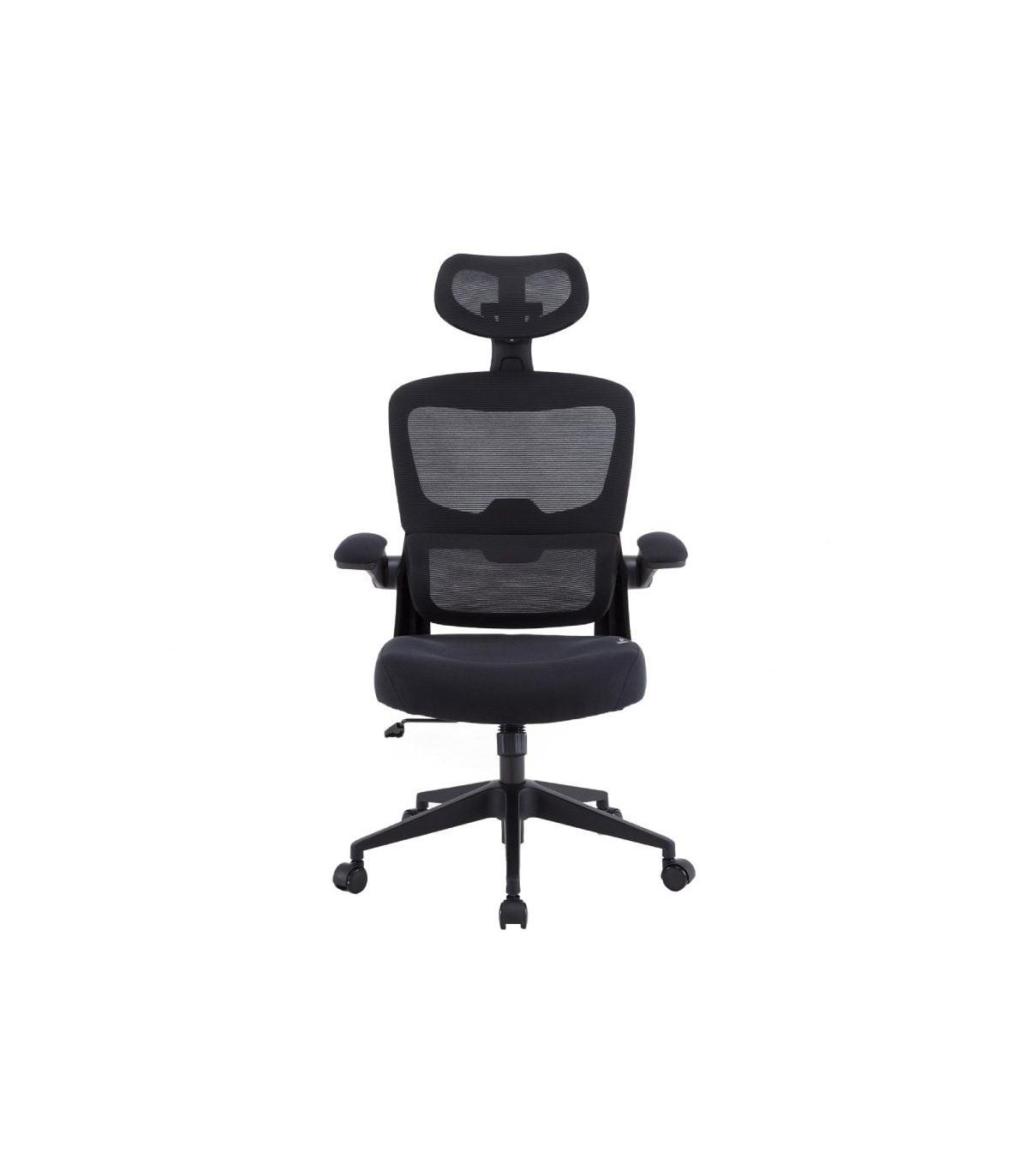 Silla de escritorio ergonmica con altura ajustable, soporte cervical adaptable y reposabrazos abatibles.
