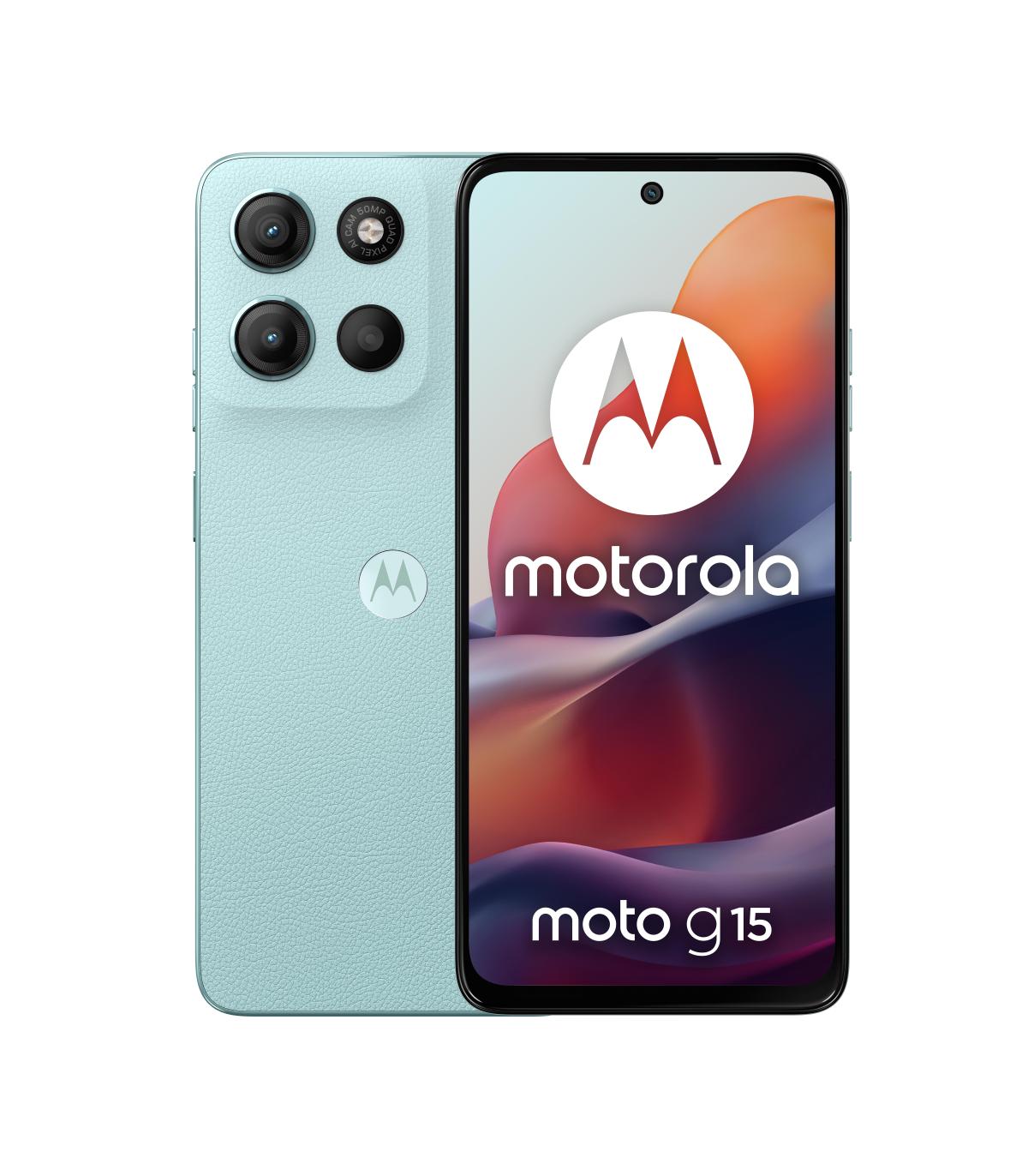 El moto g15 te lleva el cine a tus manos. Ve tus series y películas favoritas cobrar vida en una pantalla Full HD+ supernítida y brillante de 6,72”, incluso a plena luz del día. Déjate envolver por el sonido de unos altavoces estéreo potentes con refuerzo de graves y Dolby Atmos®. Captura las fotos más bonitas y detalladas con el sistema de cámaras de 50 MP(1) y deshazte de todas esas rayas molestas que aparecen con las fuentes de luz artificial. Recarga rápidamente la batería con la carga TurboPower™ (2) y usa el smartphone durante más tiempo gracias a sus 5200 mAh. Disfruta de un aspecto y una sensación de calidad con su diseño en cuero vegano, repelente al agua(3) y con cristal Corning® Gorilla® Glass 3. Y por si fuera poco, deléitate con un rendimiento rápido y muchísimo espacio para tu contenido más divertido. Da luz y color a tus días con el moto g15.