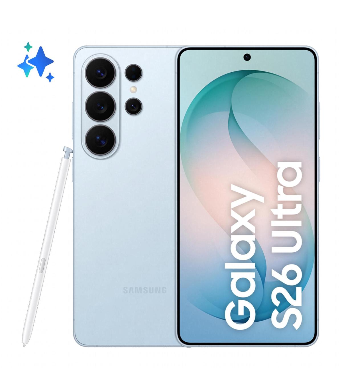 Samsung Galaxy S26 Ultra . Diagonal de la pantalla: 17,5 cm (6.9"), Resolución de la pantalla: 3120 x 1440 Pixeles. Frecuencia del procesador: 3,6 GHz, Familia de procesador: Snapdragon, Modelo del procesador: 8 Elite Gen 5. Capacidad de RAM: 12 GB, Capacidad de almacenamiento interno: 512 GB. Resolución de la cámara trasera (numérica): 200 MP, Tipo de cámara trasera: Cámara cuádruple. Capacidad de la tarjeta SIM: SIM doble. Sistema operativo instalado: Android 16.0. Capacidad de batería: 5000 mAh. Color del producto: Azul. Peso: 214 g