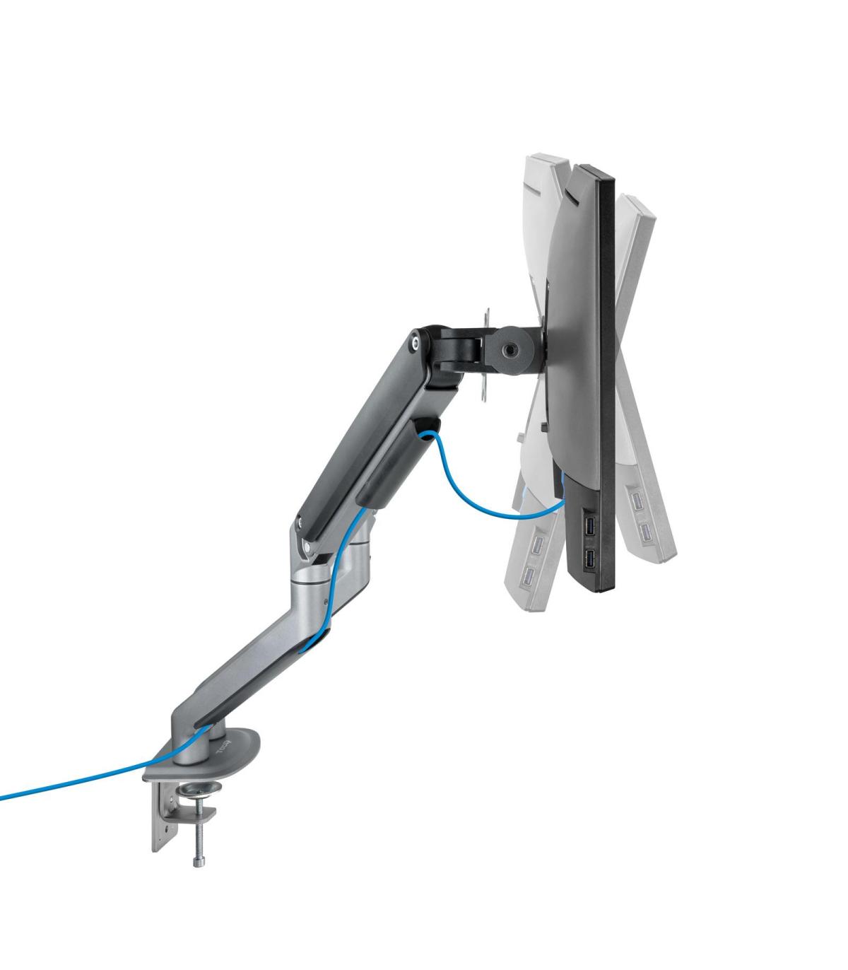 TooQ DB4132TNR-G. Montaje: Abrazadera/Atornillado, Capacidad máxima de peso: 18 kg, Tamaño mínimo de pantalla: 43,2 cm (17"), Tamaño máximo de pantalla: 81,3 cm (32"), Compatibilidad con interfaz de montaje (min): 75 x 75 mm, Compatibilidad con interfaz de montaje (max): 100 x 100 mm. Ajustes de altura, Ángulo de giro (alcance): -90 - 90°, Ángulo de inclinación: -55 - 55°. Color del producto: Negro
