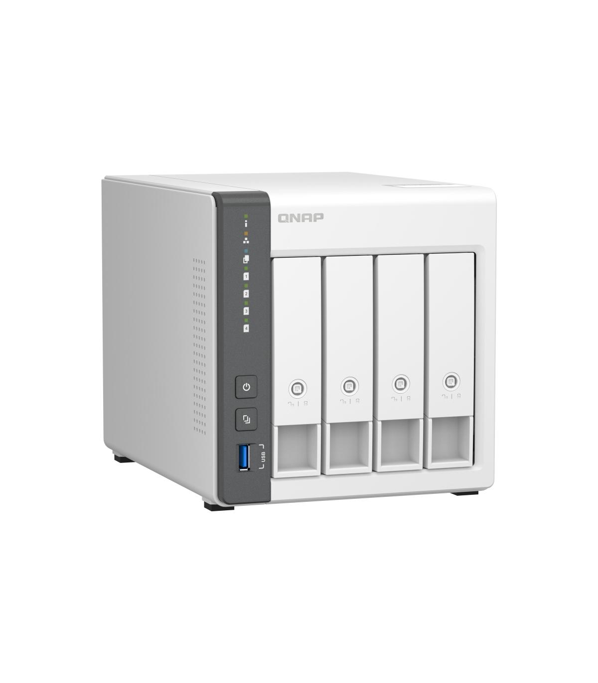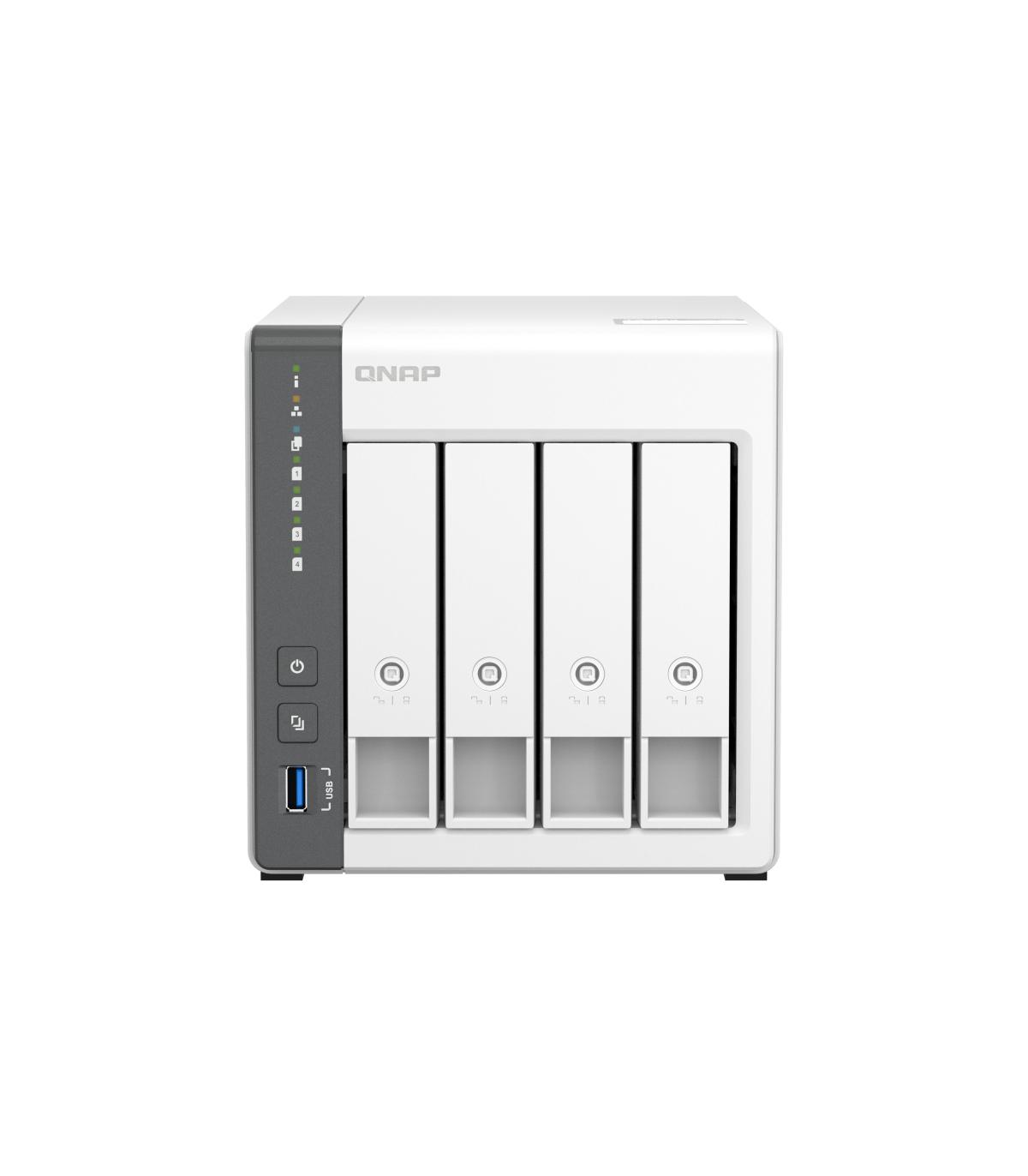 QNAP TS-433. Tipo: NAS. Tipo de chasis: Torre. Clase del dispositivo: Usuarios domésticos. Familia de procesador: ARM, Modelo del procesador: Cortex-A55, Frecuencia del procesador: 2 GHz. Memoria interna: 4 GB. Capacidad de almacenamiento total instalado: 0 TB. Sistema operativo instalado: QNAP QTS