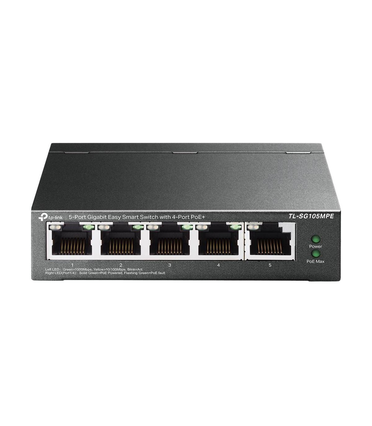 TP-Link TL-SG105MPE. Capa del interruptor: L2. Puertos tipo básico de conmutación RJ-45 Ethernet: Gigabit Ethernet (10/100/1000), Cantidad de puertos básicos de conmutación RJ-45 Ethernet: 5. Tabla de direcciones MAC: 2000 entradas, Capacidad de conmutación: 10 Gbit/s. Estándares de red: IEEE 802.1Q, IEEE 802.1p, IEEE 802.3ab, IEEE 802.3af, IEEE 802.3at, IEEE 802.3i, IEEE 802.3u, IEEE.... Voltaje de entrada DC: 53.5 V. Energía sobre Ethernet (PoE)