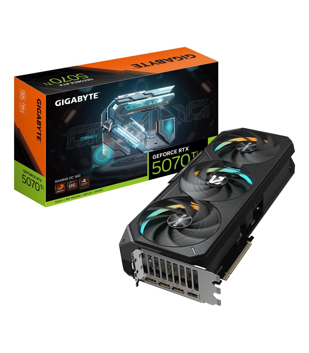 GIGABYTE GeForce RTX 5070 Ti GAMING OC 16G Tarjeta Gráfica - 16GB GDDR7, 256 bits, PCI-E 5.0, 2588 MHz Core Clock, 3 x DP 2.1a, 1 x HDMI 2.1b, NVIDIA DLSS 4, GV-N507TGAMING OC-16GD. Familia de procesadores de gráficos: NVIDIA, Procesador gráfico: GeForce RTX 5070 Ti, Frecuencia del procesador: 2588 MHz. Capacidad memoria de adaptador gráfico: 16 GB, Tipo de memoria de adaptador gráfico: GDDR7, Ancho de datos: 256 bit, Velocidad de memoria del reloj: 30000 MHz. Máxima resolución: 7680 x 4320 Pixeles. Versión DirectX: 12.0, Versión OpenGL: 4.6. Tipo de interfaz: PCI Express x16 5.0. Tipo de enfriamiento: Activo, Número de ventiladores: 3 Ventilador(es)