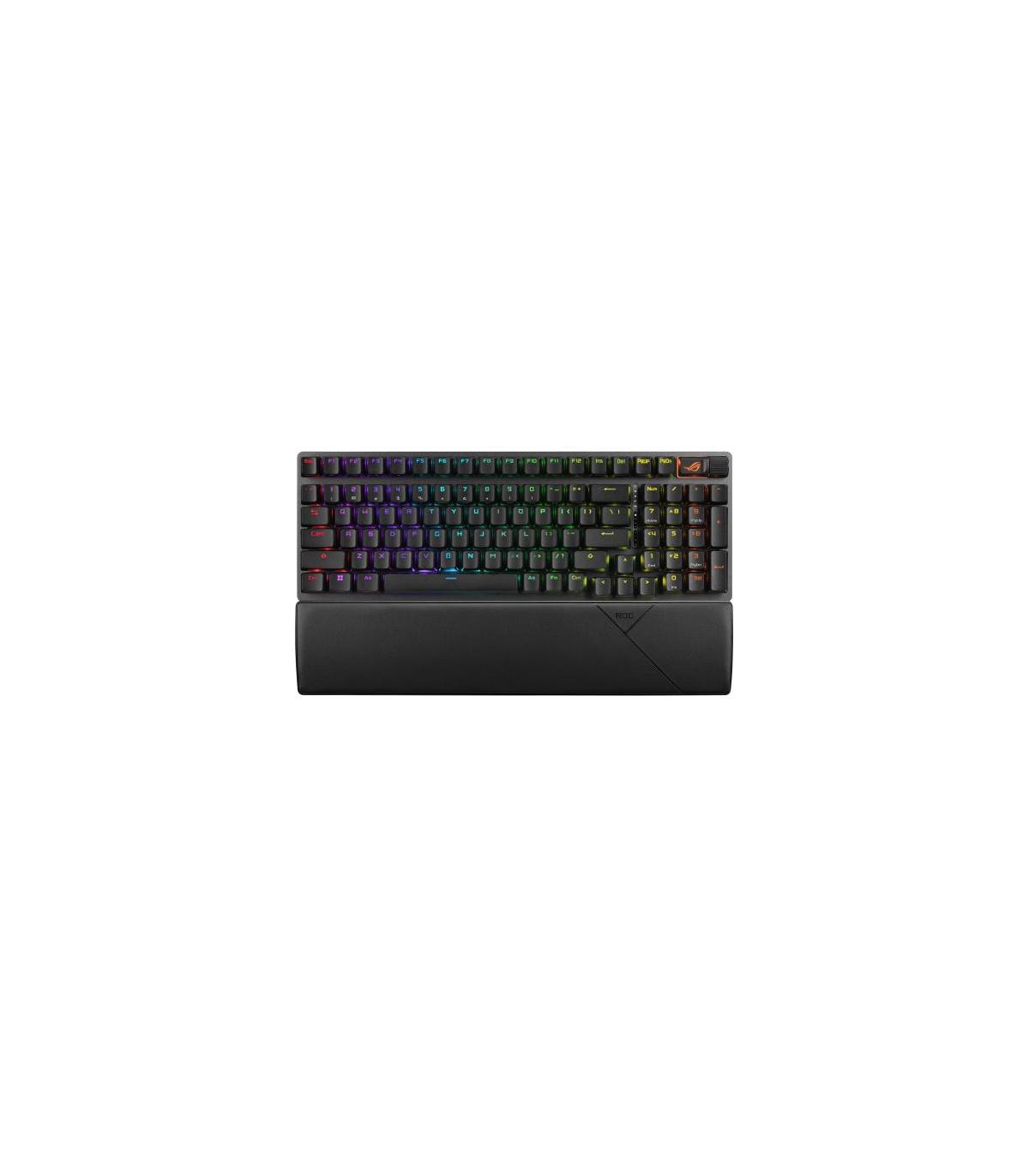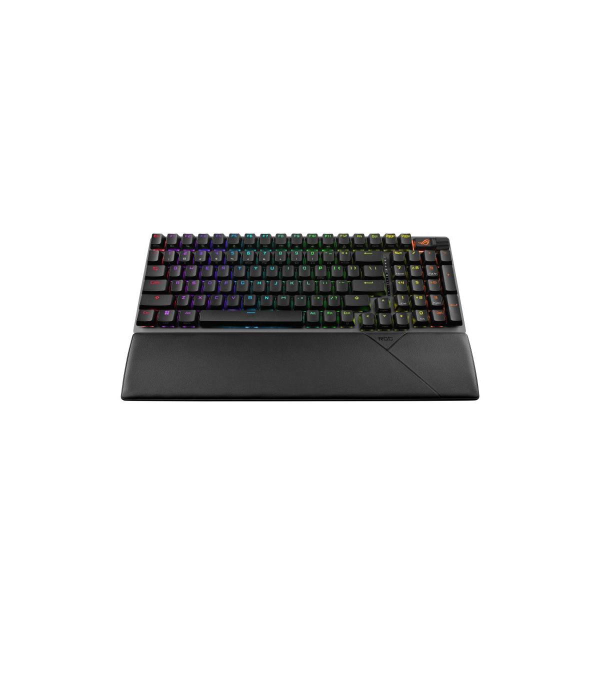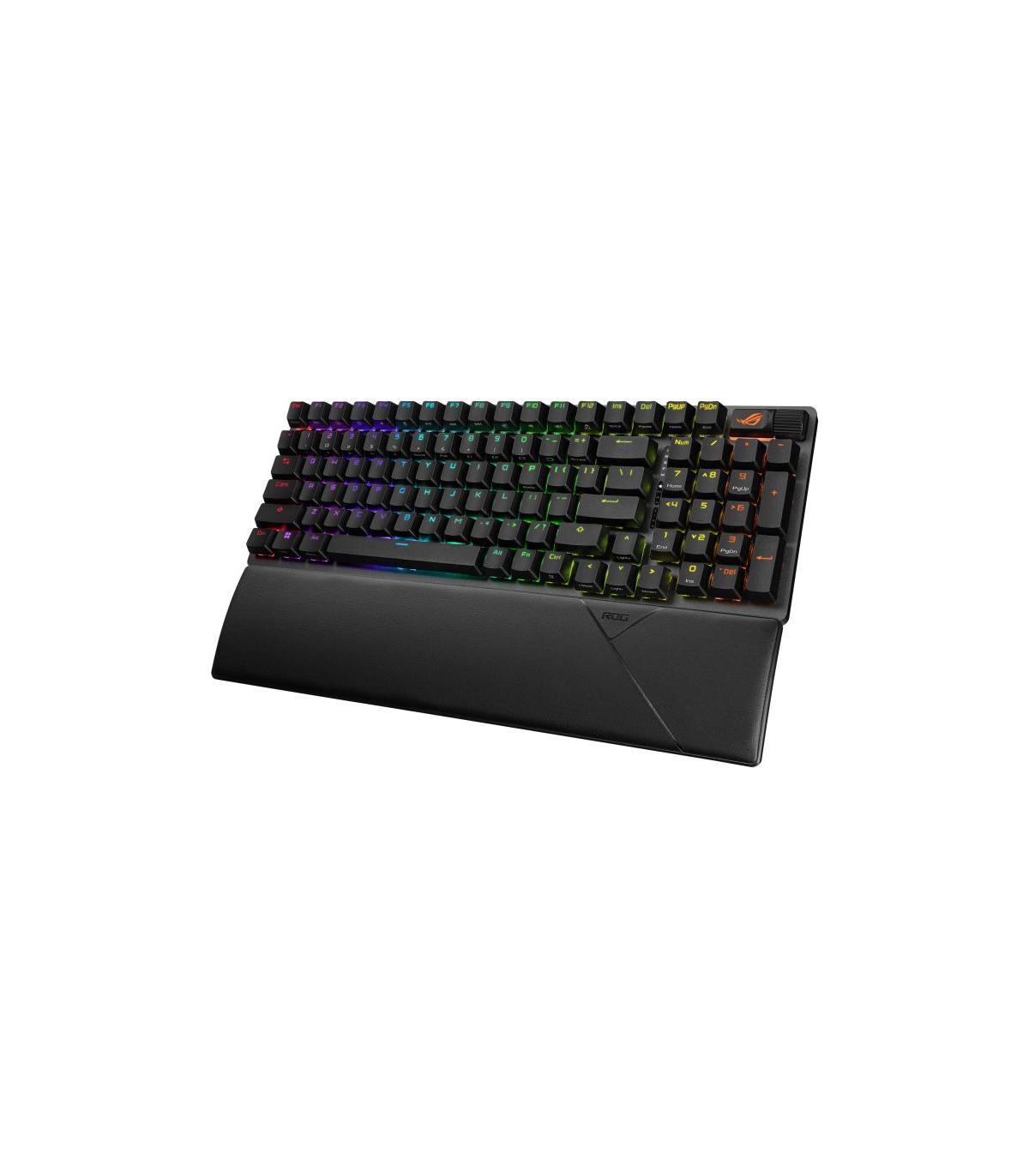 ASUS ROG Strix Scope II 96 Wireless. Formato del teclado: 96%, Tecnología de conectividad: Inalámbrico y alámbrico, Interfaz del dispositivo: USB + RF Wireless + Bluetooth, Interruptor del teclado: Interruptor mecánico. Tipo de retroiluminación: LED RGB, Descansa muñecas. Longitud de cable: 2 m. Uso recomendado: Juego. Color del producto: Negro