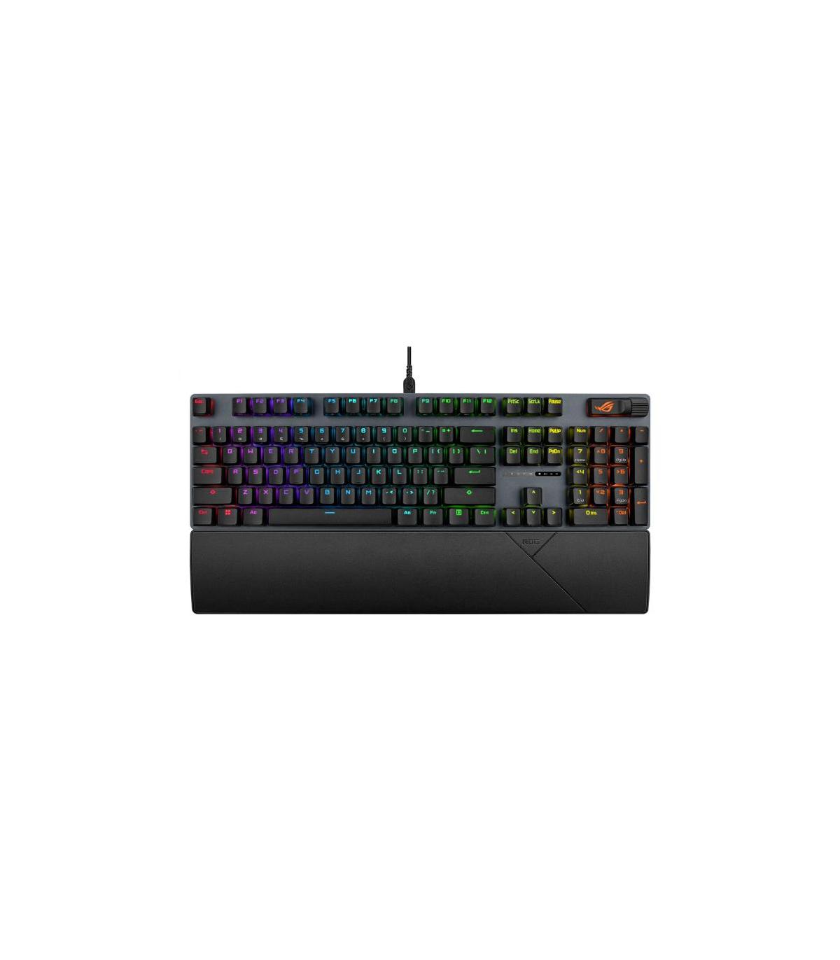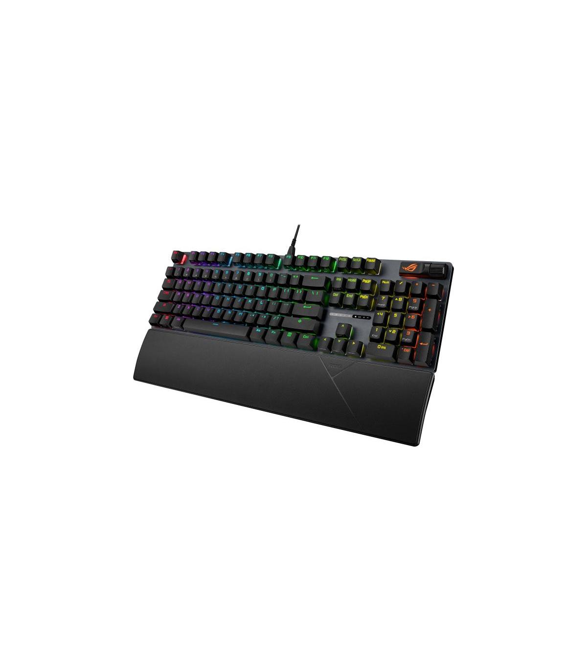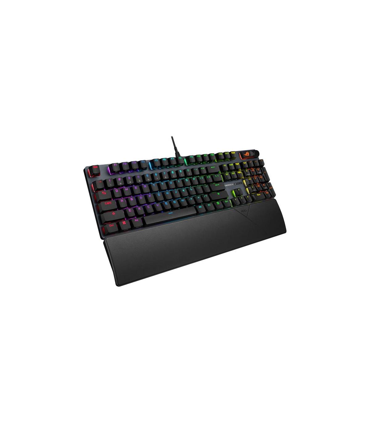 ASUS ROG Strix Scope II X. Formato del teclado: Completo (100%), Tecnología de conectividad: Alámbrico, Interfaz del dispositivo: USB, Interruptor del teclado: Interruptor mecánico. Tipo de retroiluminación: LED RGB, Descansa muñecas. Longitud de cable: 2 m. Uso recomendado: Juego. Color del producto: Negro