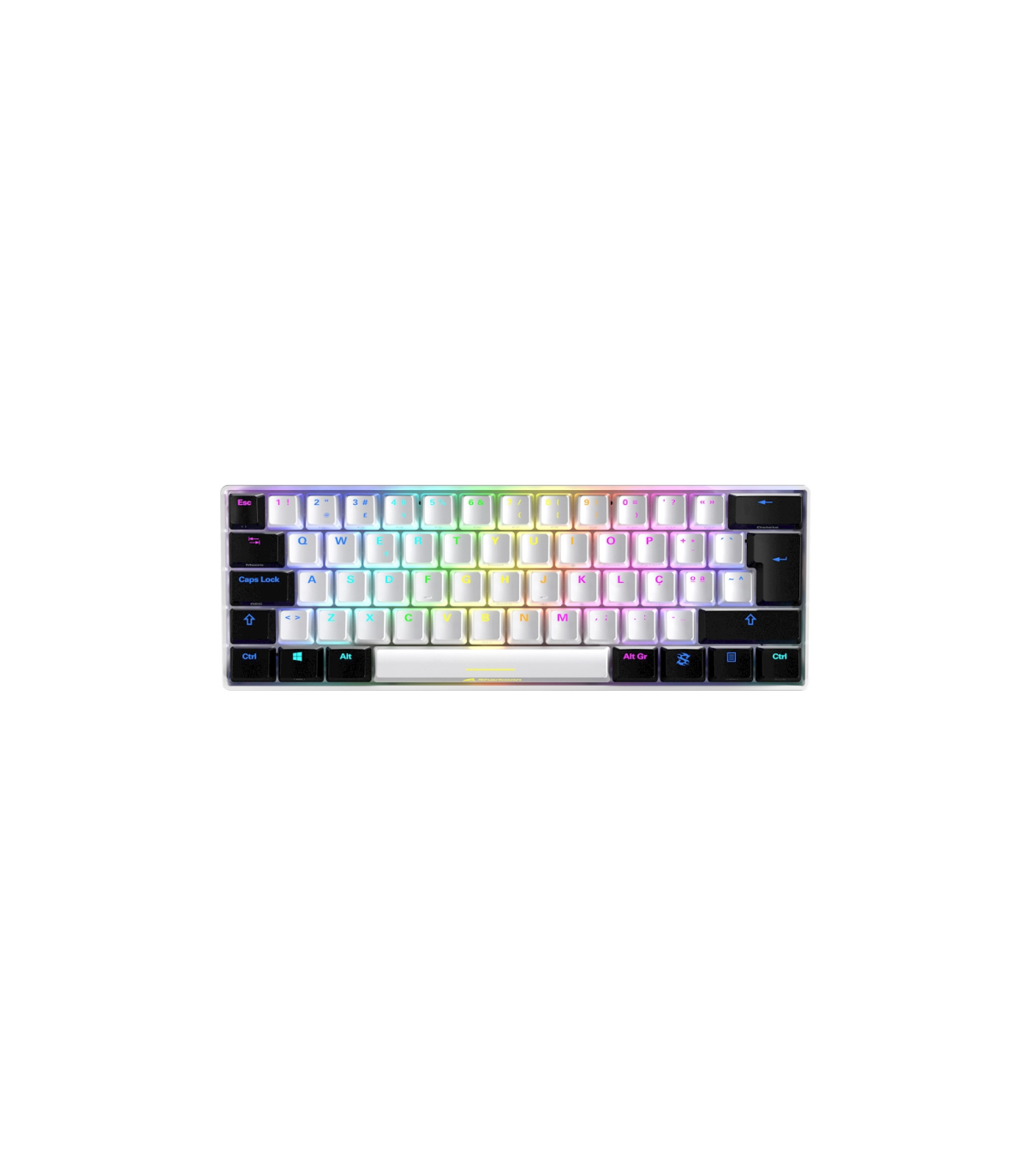 Sharkoon SGK50 S4, 60%, RF inalmbrica + USB, QWERTY, LED RGB, Blanco