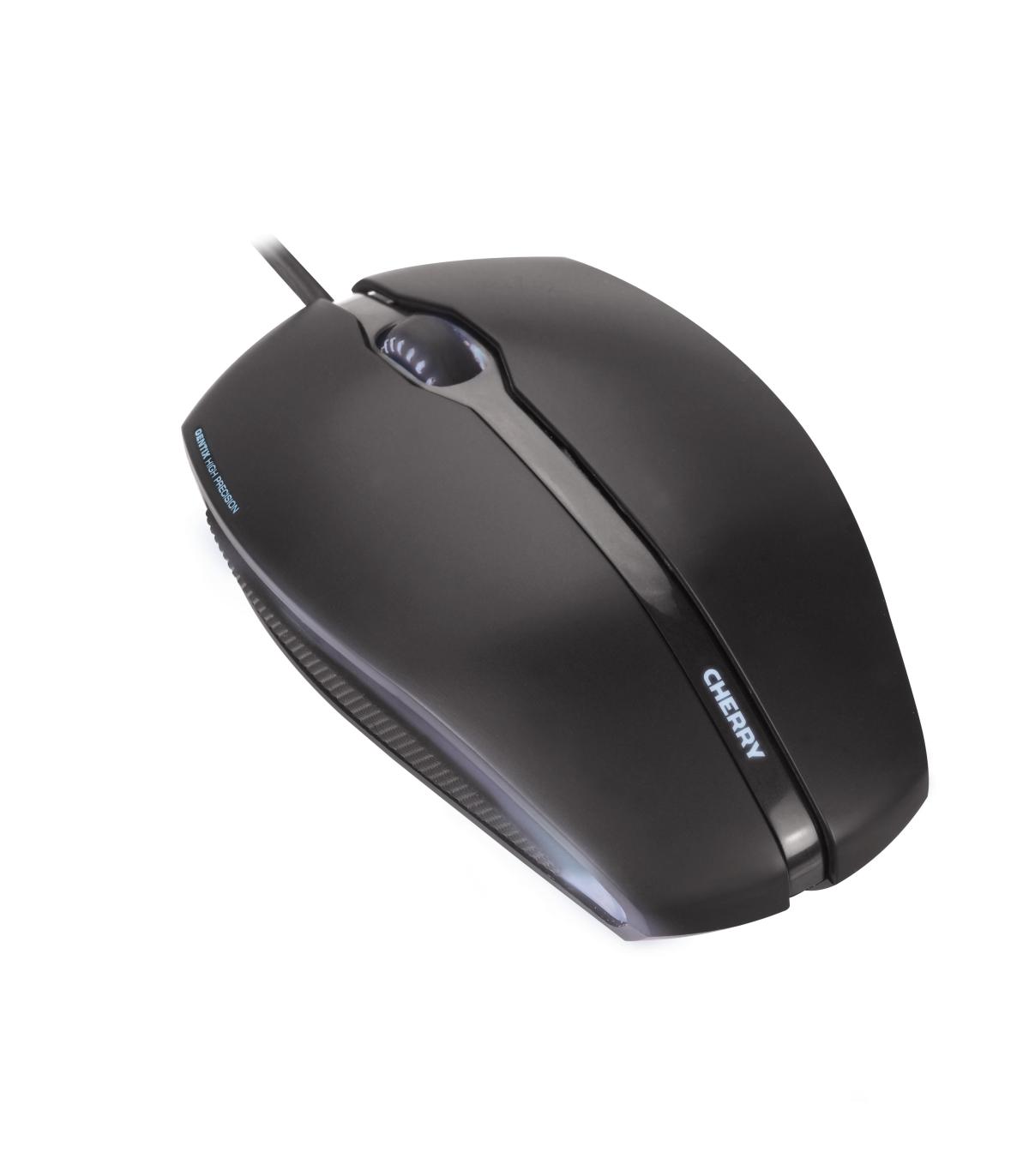 CHERRY Gentix Illuminated. Factor de forma: Ambidextro. Tecnología de detección de movimientos: Óptico, Interfaz del dispositivo: USB tipo A, Resolución de movimiento: 1000 DPI, Tipo de botones: Botones presionados, Cantidad de botones: 3, Tipo de desplazamiento: Rueda. Fuente de energía: Cable. Color del producto: Negro