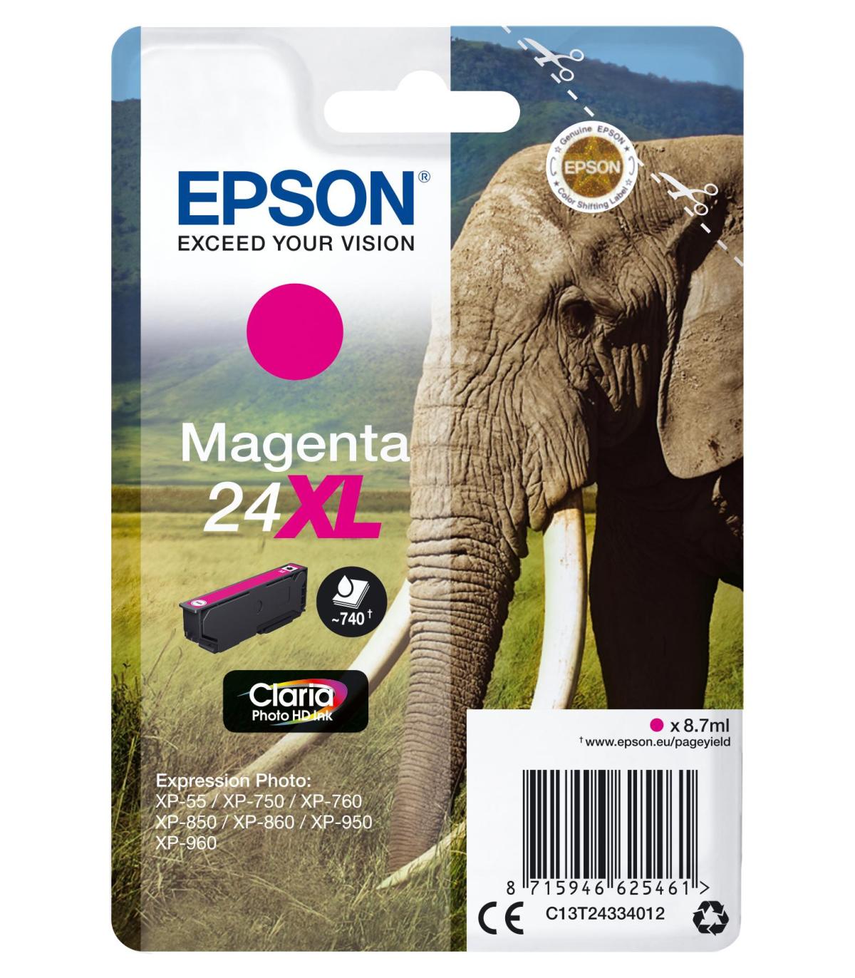 Epson Elephant Cartucho 24XL magenta, Alto rendimiento (XL), Magenta, Tinta a base de pigmentos, 8,7 ml, 1 pieza(s), 740 páginas