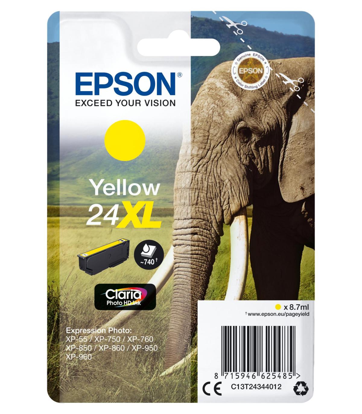 Epson Elephant Cartucho 24XL amarillo, Alto rendimiento (XL), Amarillo, Tinta a base de pigmentos, 8,7 ml, 1 pieza(s), 740 páginas