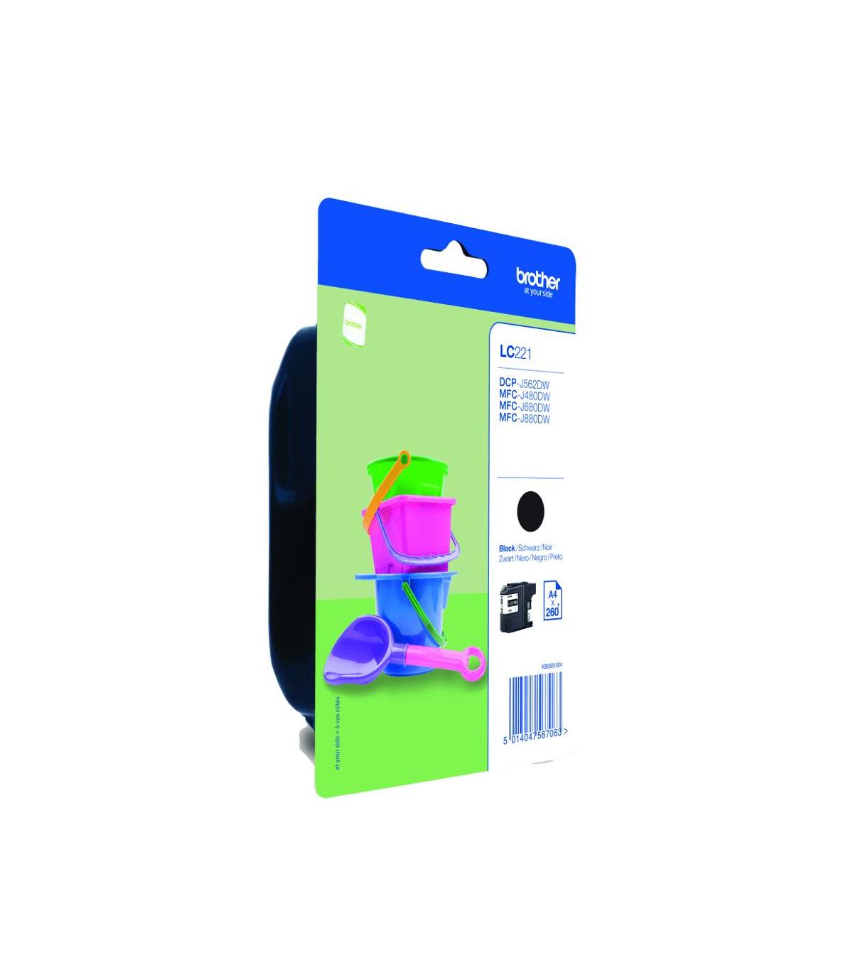 Brother LC221BKBP. Tipo de suministro: Pack individual, Colores de impresión: Negro, Cantidad por paquete: 1 pieza(s), Rendimiento de impresión de página con tinta negra: 260 páginas