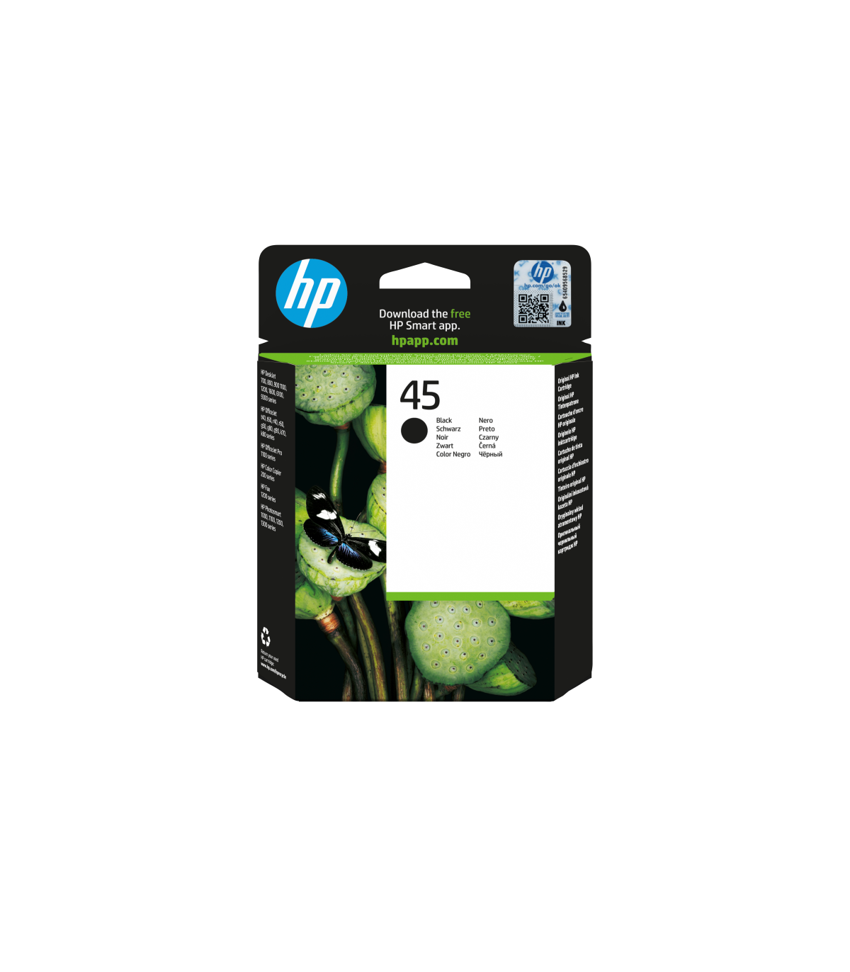 HP Cartucho de tinta original 45 grande negro, Alto rendimiento (XL), Negro, Tinta a base de colorante, Tinta a base de pigmentos, 1 pieza(s), 930 páginas
