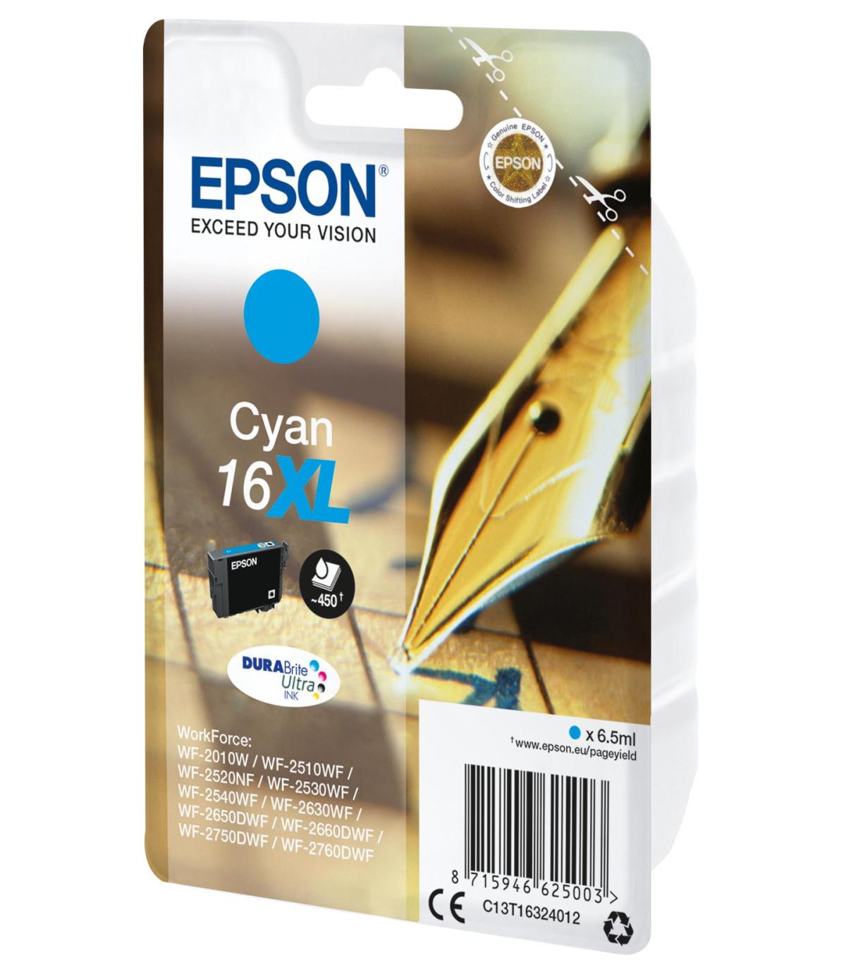 Epson Pen and crossword Cartucho 16XL cian. Tipo de cartucho de tinta: Alto rendimiento (XL), Rendimiento de impresión de página con tinta de color: 450 páginas, Volumen de tinta de color: 6,5 ml, Colores de impresión: Cian, Cantidad por paquete: 1 pieza(s)