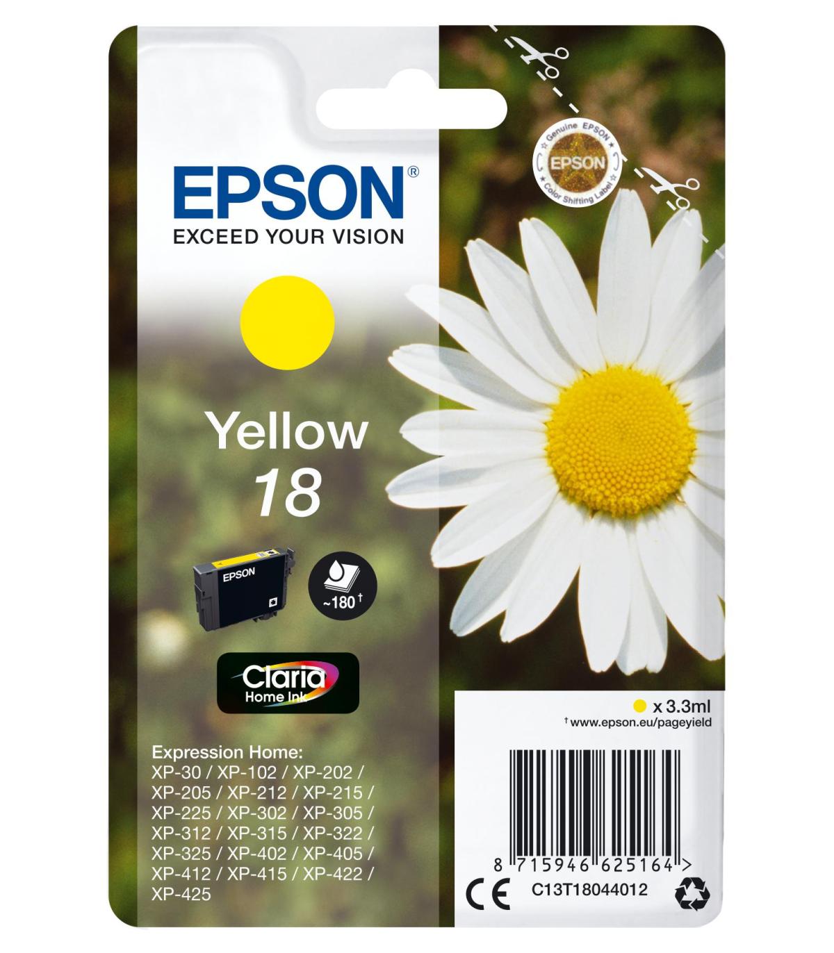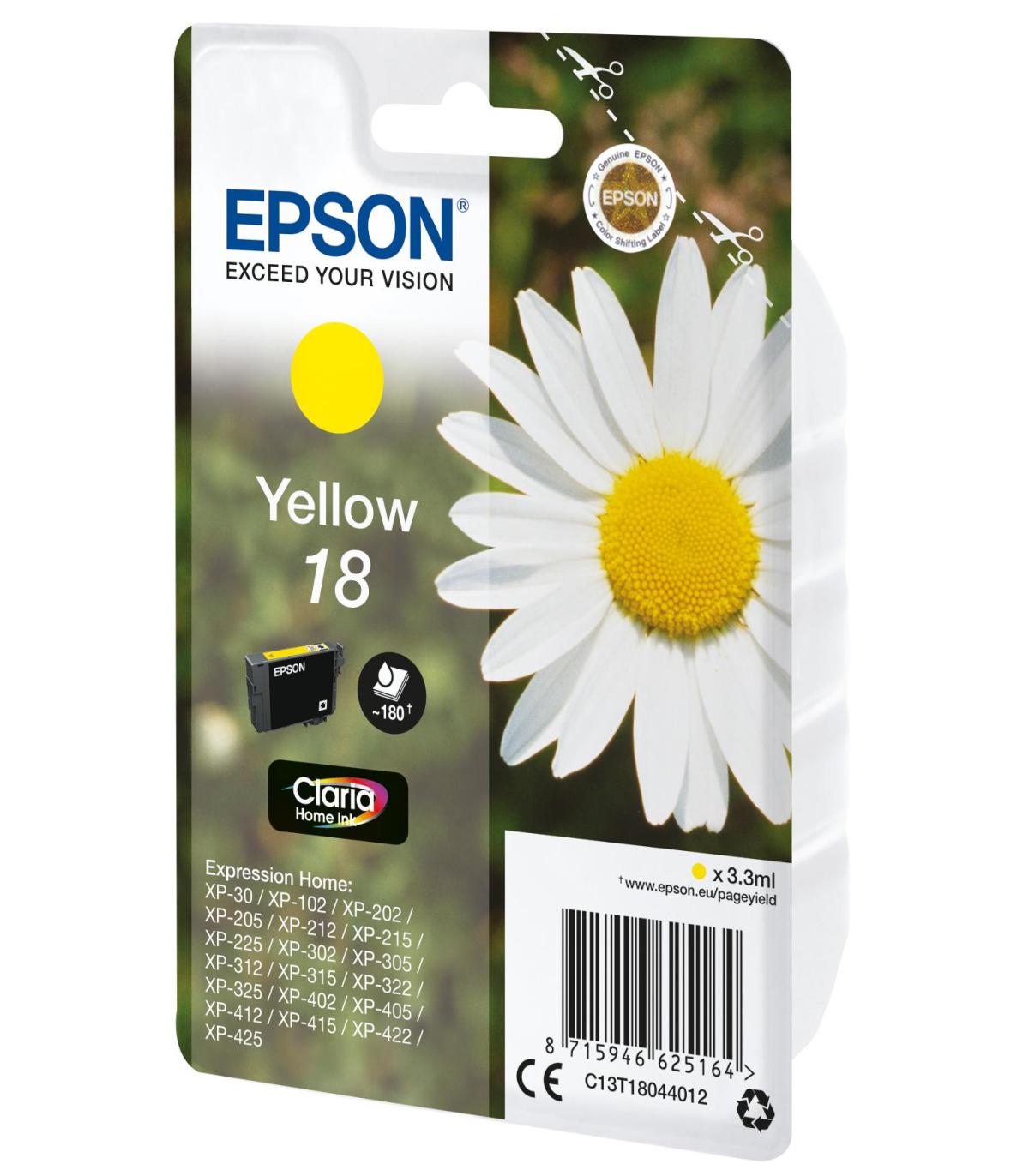 Epson Daisy Cartucho 18 amarillo, Rendimiento estándar, Amarillo, Tinta a base de pigmentos, 3,3 ml, 1 pieza(s), 180 páginas