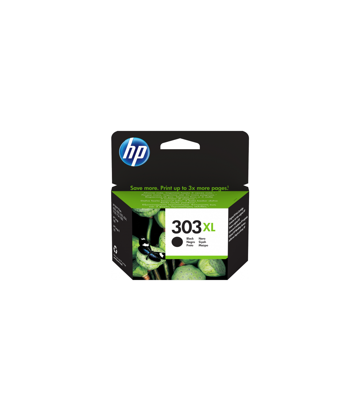 HP Cartucho de tinta Original 303XL negro de alta capacidad. Tipo de cartucho de tinta: Alto rendimiento (XL), Tipo de tinta negra: Tinta a base de pigmentos, Volumen de tinta negra: 12 ml, Tipo de suministro: Pack individual, Colores de impresión: Negro, Cantidad por paquete: 1 pieza(s), Rendimiento de impresión de página con tinta negra: 600 páginas
