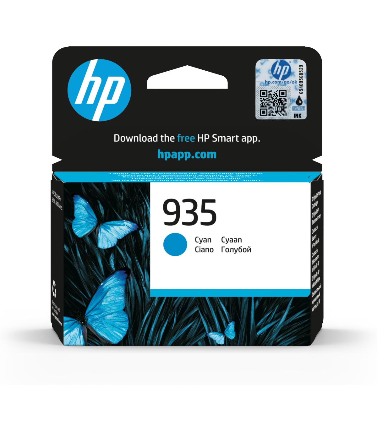 HP Cartucho de tinta original 935 cian, Rendimiento estándar, Cian, Tinta a base de pigmentos, 4,5 ml, 1 pieza(s), 400 páginas