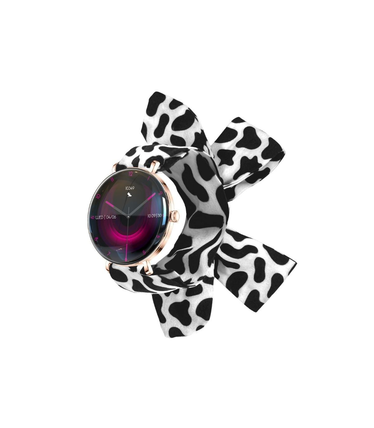 - Funciones: Hora y fecha, monitor de frecuencia cardaca, modos deportivos, monitoreo del sueo, contador de caloras, clima, recordatorio de inactividad, historial de actividades, podmetro, recordatorio de hidratacin, notificaciones, cronmetro/temporizador, calendario menstrual, cambio de esfera, encontrar reloj/telfono, directorio telefnico, notificaciones SMS, visualizacin de notificaciones, iluminacin con movimiento de mueca, control de msica, calculadora, altavoz, sensor G, videollamadas